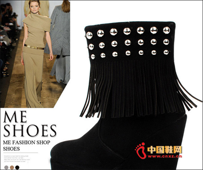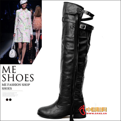 歐美風潮的時尚人氣潮靴。帥呆了!性感流蘇加上皮帶扣的低跟設計,讓這些性感長靴陪你過冬。