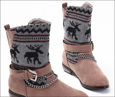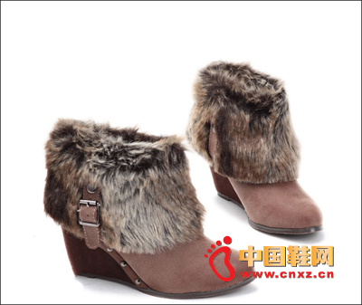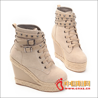 秋冬復古的鉚釘綁帶蝴蝶結,毛毛拼接防水臺高跟及膝高筒靴很有歐美范兒,讓你穿出嫻靜的氣質。