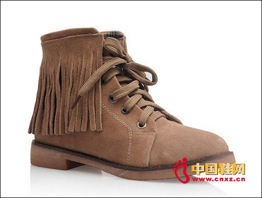 全牛皮流蘇裝飾牛筋底細帶短靴子休閑靴,全牛皮制作,流蘇裝飾,很有范兒的鞋子!適合朋克女孩!