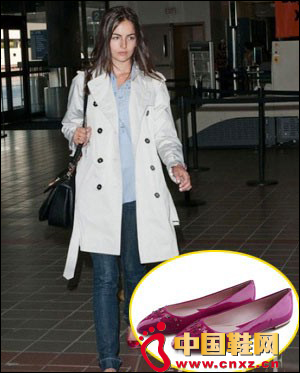 在這款玫紅色羊皮平跟鞋,簡(jiǎn)單的星星排布,金屬材質(zhì)呼應(yīng)鞋底金屬單邊,錯(cuò)落有致、大方得體。白色風(fēng)衣搭配休閑牛仔褲,粉藍(lán)色的打底衫散發(fā)幾分柔美氣質(zhì),搭配黑色挎包和這款梅紅色平跟鞋,時(shí)尚度立刻呈直線上升。
