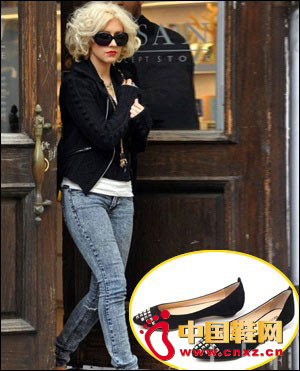 這款黑羊絨鉚釘帥氣尖頭平跟鞋,融合了時(shí)下最流行的鉚釘元素,采用舒適端莊的黑羊絨材質(zhì),以一種低調(diào)奢華之風(fēng)彰顯貴族大雅之氣。一身休閑的黑色外套和內(nèi)搭的白色T恤搭出了錯(cuò)層的感覺(jué),普通的緊身牛仔褲也能搭出有型的裝扮,黑色的挎包和該款黑色鉚釘鞋,黑墨鏡三者有序呼應(yīng),這就是明星的風(fēng)范。