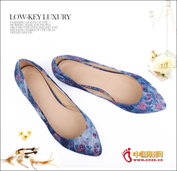 即使身處繁華喧鬧的城市,仍抵不住對那份平實純樸的向往。這款淺口女鞋,采用極具質感的牛仔為面料,印滿溫馨浪漫的玫瑰花朵,搭配古典的尖頭設計,散發恬靜的女人味,讓人忍不住想親近想擁有。
