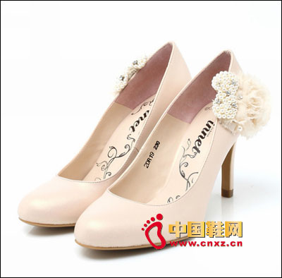 由珍珠與水鉆編織而成的蝴蝶結,加上蕾絲材質立體薔薇花朵,組成甜美花飾點綴鞋側,可自由拆卸,令鞋型更加嬌俏可人!
