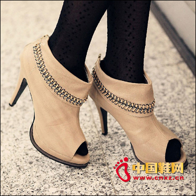 鏈條魚嘴踝靴,復古帥氣摩登,出街超贊的
