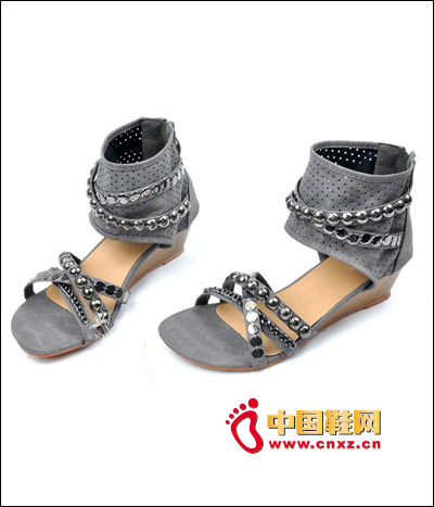 歐美性感鉚釘涼鞋,很有羅馬風,鉚釘鑲上交叉的皮帶扣,很有個性。
