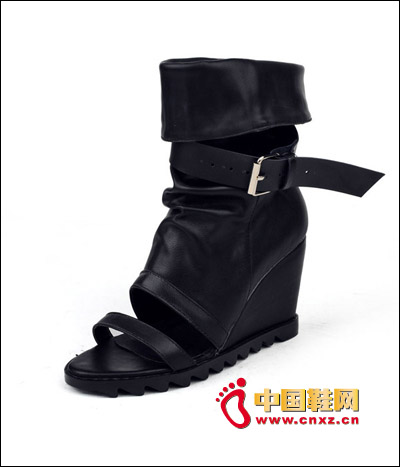 超酷炫的一款涼鞋,高幫設計,皮帶扣看起來很有個性,特別是鞋底的獨特設計和魚嘴,非常歐美風。