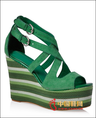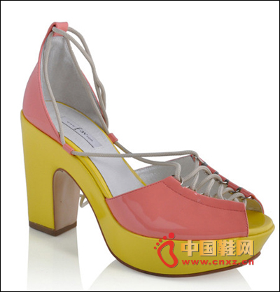 夏天糖果色最為經典,超贊的一款漆皮坡跟鞋,魚嘴系帶款式漏有腳跟 ,鞋面也為漆皮面料。