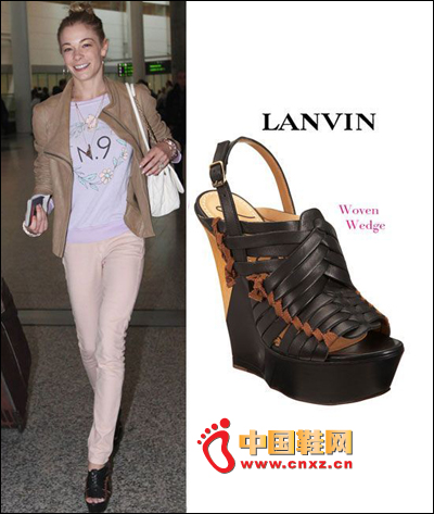 中國鞋網6月8日訊,在2011春夏時裝周上,厚底楔跟涼鞋再次領先秀場。設計師們誓要讓女人們提起自信,以“高”來收獲幸福感。在設計細節(jié)上,厚底楔跟涼鞋鞋底的材質以木質和繩編、藤編最為流行,返璞歸真的淳樸味道有效削減了超高鞋底的強勢感。