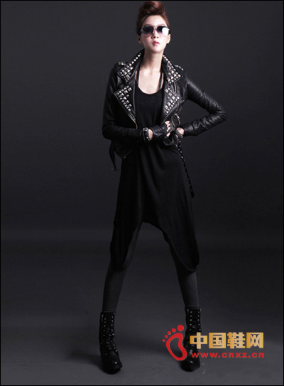 黑色透視的襯衫搭配洗水做舊短褲打造型格潮味,搭配厚底松糕鞋和蕾絲花邊短襪的新穎組合,整身黑色的搭配更增神秘魅惑時(shí)尚感。