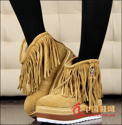 甜美流蘇靴中跟坡跟厚底真皮牛皮流蘇短靴,帥氣的圓頭,硬朗的鞋面及踝設(shè)計,亮麗的厚底松糕跟,皮帶扣的修飾中唯一主要亮點,系中性帥氣,一款英倫風(fēng)潮款鞋履。