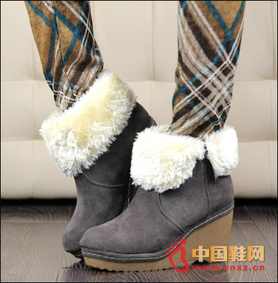 超高跟坡跟防水臺毛毛翻邊短靴,牛仔靴褲搭配短靴時尚而帥氣,這樣長度的坡跟靴子適合腿部線條很直的女生,會使腿部線條更筆直細(xì)長。