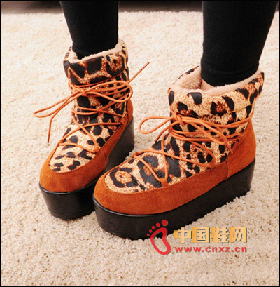 豹紋真皮拼接厚底雪地靴,這是一款秋冬季節里優雅大方的圓頭厚底靴,舒適顯高的厚底坡跟,個性的羅馬風格雪地靴,舒適大方的設計,更顯典雅氣質。