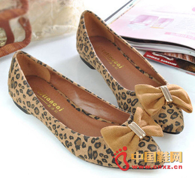 大蝴蝶結豹紋尖頭平底鞋,彰顯自己的個性,襯托你的個性魅力氣質,為你賺足回頭率。