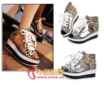 豹紋坡跟女鞋,魚嘴松糕跟厚底歐美時尚百搭娃娃鞋,時尚糖果淑女鞋!