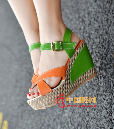 夏季流行的拼色設(shè)計涼鞋,雙色拼接并包跟的PU款,非常獨(dú)特的一款涼鞋,穿起來很舒適的一款坡跟涼鞋。