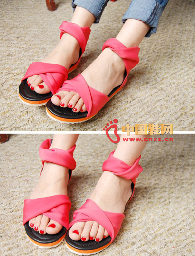 平底交叉糖果色露趾涼鞋,這么美的配色,真的無法抵擋。