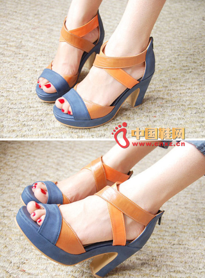 復古交叉綁帶拼色涼鞋,上腳超美!有拉長腿部線條的效果。