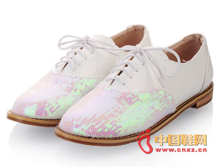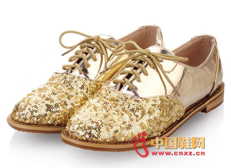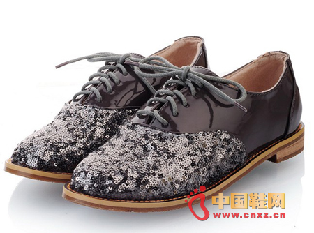 歐美亮片設計,鞋頭的亮片甚是搶眼,拼接鞋身的金屬色,使英倫風牛津鞋潮爆你的眼球。
