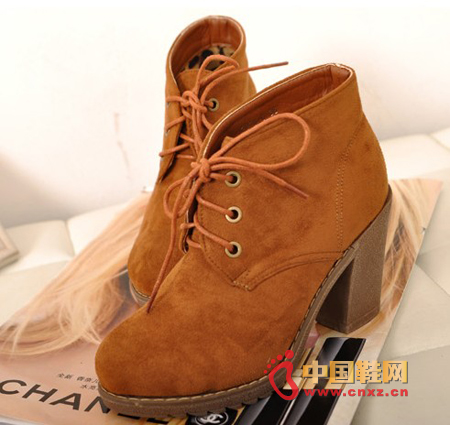 駝色粗跟系帶短靴,粗跟自然比細跟更容易駕馭、更為舒適,戰斗力自然也更持久,且粗跟總是有一種難以言喻的清新復古味道。
