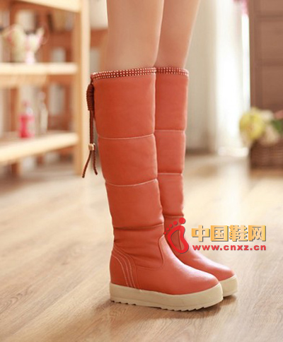 糖果色的應用真是一大亮點,多了時尚和青春的氣息,此款大熱的厚底鞋設計和保暖絨,冬天不再寒冷,另外鞋邊緣的小鉆和麻繩結的裝飾顯出小女生的可愛和甜美。對于年輕的女性,特別是大學生朋友而言,冬季最適合不過的長靴了。