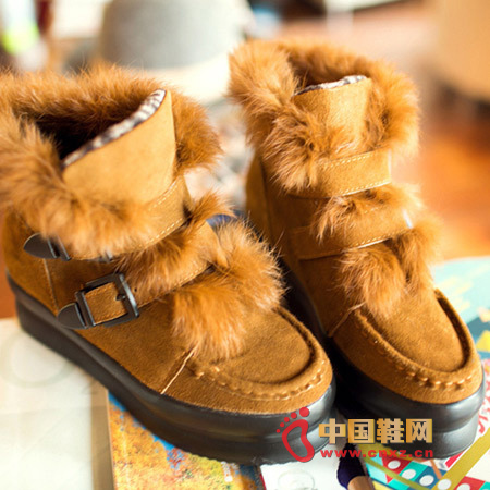 深卡其色彩的精美小短靴,輕柔而細膩的皮草點綴,給人以優雅的奢華風范,時尚的小平底,穿著起來非常的舒適,厚實的質感,充滿了溫暖感。