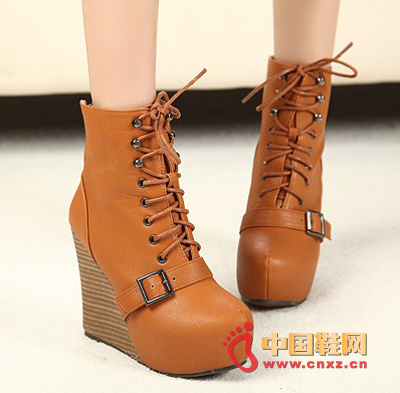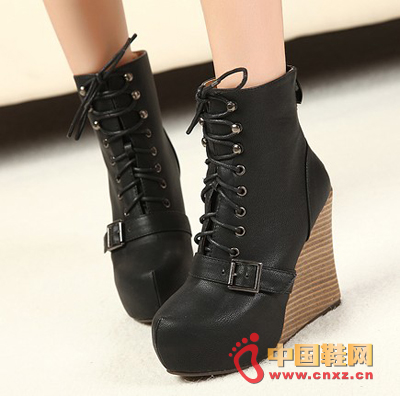 歐美風(fēng)坡跟系帶短靴 僅售98元