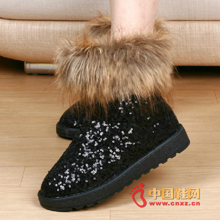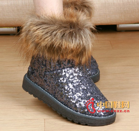 休閑風(fēng)亮片雪地靴,鮮明的金屬亮片,晶瑩的質(zhì)感,充滿了迷人的華麗氣息,柔軟的皮草面料,飄逸的質(zhì)感,透露出浪漫的色彩,帶來超強(qiáng)的保暖效果。