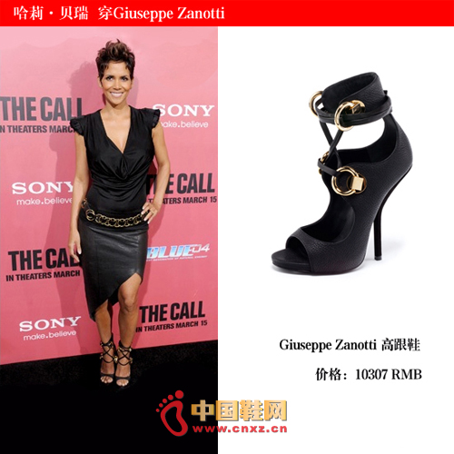 Giuseppe Zanotti每次設(shè)計鞋履都能展示出他那過人的細(xì)心及敏銳的時尚觸覺。細(xì)節(jié)嫵媚有力的線條加上金屬裝飾,華貴高雅又別具個性。Halle Berry一身黑色皮質(zhì)連衣裙亮點就在于腰帶的一串金屬環(huán)與搭配的鞋子有相同的元素,整體的搭配很和諧。