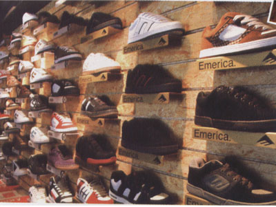 E-FERNAL是一家專業滑板店,主要經營滑板品牌用品和街頭潮流服飾,店內設計簡潔、另類。給人以酷酷的時尚感。環顧店內,整齊的貨架上陳列的各種服飾品如丁恤、背包、帽子、鞋等都十分獨特新穎尤其是迎面二樓上陳列的鞋子。風格十分別致。是你在別家店里看不到的。年輕漂亮的老板娘熱情地告訴我們,那些都是專業滑板鞋.與一般鞋子不同,腳跟都裝有減震裝置,非常輕便耐磨,款式也酷酷的,不僅令圈內人士喜愛。時尚的年輕人也愛買來搭配休閑褲穿。價位不貴。一般只有三、五百元。ETERNAL店還是美國三大滑板鞋品牌6s、etnies和Emeria在北京地區的總代理。店老板是一個年輕的滑板發燒友。也是第一個在北京開滑板專賣店的人這家店已經開76、7年7.在圈內很有名氣,目前在地安門外大街139號還開有分店。除賣專業滑板用品,店里也經營一些潮流前沿服飾。如那些土著和日本卡通風格圖案的T恤.都是進口的美國原版,只有220元;還有印花防水背包、在美國、歐洲、日本和香港等地頗為流行的STUSSY休閑褲等。深受年輕潮人的喜愛幾乎每周都有新款到貨,喜歡玩滑板的朋友可以經常去逛逛,肘尚潮人也不要錯過哦。