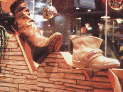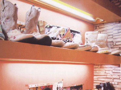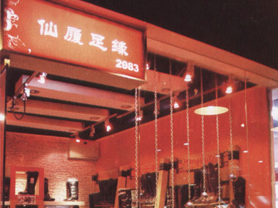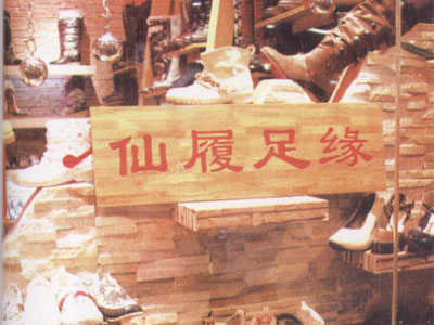 仙履足緣店在2樓,店面不大,卻十分弓l人矚目。除了店名讓人充滿了好奇心,店面的設計也十分別致,原木的貨架。石頭堆砌效果的背景,把視線一下子從都市拉到了郊野。尤其是門臉那塊半截石頭墻上用紅字雕刻的木板招牌,還有招牌下那些展露出的與眾不同的時尚氣息的鞋子誘惑著你一定要進去看個究竟。進到店里,滿目的鞋子都是那么的新奇,讓你精神一震.熱情的店主此肘已向你娓娓道來:這里的鞋