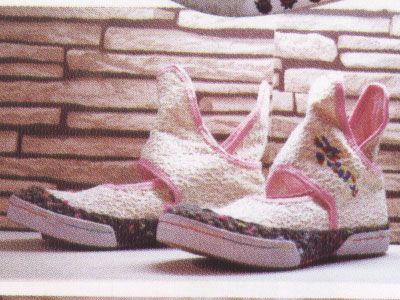 款全部是日本進口的。男女款都有,是日本潮瀑cutie明星鞋,別家沒有賣。店老板一邊說一邊指著側墻上貼的圖片說,日本潮瀑cutie明星鞋特別受明星的青睞,很多明星都為其做過代言,他們腳上穿的就是這個牌子的鞋。熱熱鬧鬧的畫面讓不大的店面更顯入氣十足。那些別致的鞋子不僅非常時尚,穿起來也很舒服。店老板拿起其中一款將后幫拆下來,原來這款休閑鞋還可以變成拖鞋,設計真是巧妙.一問價格,居然只有兩百多元實實在在的物美價廉你也心動了吧!