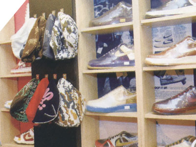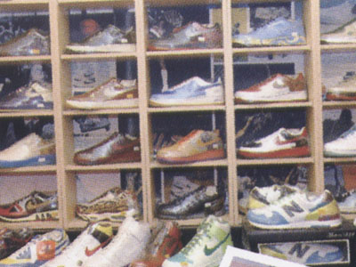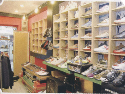 剛到藏火的時候,我并沒有一眼認(rèn)出它,因?yàn)楹啙嵉恼信谱屛覠o法想象它已經(jīng)在北京小有名氣。店門前的櫥窗里陳列著幾雙超大的籃球鞋略具特色,店內(nèi)陳設(shè)較為簡單隨意,木質(zhì)鞋柜中整齊的擺放著各具特色的鞋款,也許只有進(jìn)到店里你才能知道這家店為什么那么受歡迎。