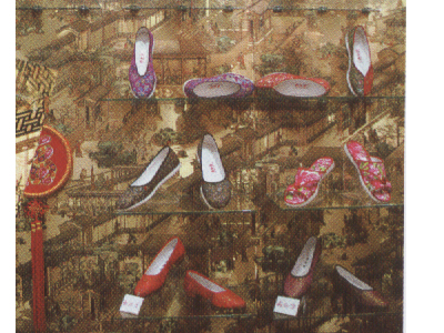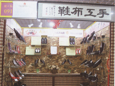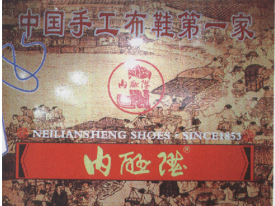 老北京布鞋內(nèi)聯(lián)升安貞店坐落在振宇服裝市場的二樓,是安貞地區(qū)惟一一家內(nèi)聯(lián)升連鎖店,雖然深居二層的內(nèi)區(qū),但古色古香的店面使其在眾店中脫穎而出,十分惹眼。抬頭看去,飄著墨香的“手工布鞋”四個字讓你肅然起敬。環(huán)顧店內(nèi),整個內(nèi)墻貼滿了亞金色工筆畫的壁紙,上面還掛了一個十分喜人的彩色刺繡“福”字圓形掛件,各色精美的繡花鞋和青一色的男士布鞋整齊有序地分列兩邊貨架,烘托出濃濃的傳統(tǒng)氣息。年輕、熱情的店老板介紹說這里聚集了內(nèi)聯(lián)升所有的經(jīng)典款式,且每款的價格都與大柵欄總店的價格保持一致,并且各款鞋均可接受預(yù)訂,深受附近居民的喜愛。老北京人講究“腳踩內(nèi)聯(lián)升”,因為僅布鞋千層底的制作,就要經(jīng)過27道工序。納底要求生平方寸用麻繩81針以上,針孔細,針碼分布均勻。納好的鞋底還要經(jīng)熱水浸泡及熱悶后,用鐵錘平,不能走樣。這樣的芏底堅固耐用,柔軟舒適、不起層、不變形,即使有汗腳毛病的人穿用,鞋底也不會濕。绱鞋的技術(shù)則細致嚴格,手工倘鞋時,緊繃模型,平整服帖,绱鞋的針碼要間距齊整,鞋幫與鞋底來合飽滿,吃幫均勻。看著裝入精美鞋盒的一雙雙手工布鞋,你會驀然感嘆“內(nèi)聯(lián)升”百年老店精湛的工藝一點兒不輸今天的奢華品牌。