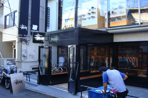 在經(jīng)過良久的裝潢之后,位于日本原宿的Stussy店鋪在08年重新開幕。簡約懷舊的風(fēng)格,店內(nèi)使用了不少管道作為衣架,別具風(fēng)味。重新開幕時候的限定單品邀請到了Reas、Eric Elms、以及Undeafted一同跨刀設(shè)計,可說是面子十足。