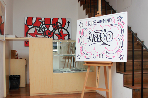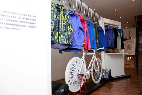 店鋪內(nèi)為了更好的讓眾人了解到死飛文化以及死飛運動的本身,店鋪兩側(cè)展出了由quang進(jìn)行拍攝的攝影作品,通過一幅幅鮮明的照片,展現(xiàn)了帶有濃郁西海岸死飛文化,也展示出了最具有死飛精神也最為街頭化的一面,無論你是否了解這個文化,也都會被這一幅幅的照片所感染,同樣由ERIC HAZE所涂鴉的畫作也在其中展示,讓你可以親身感受到這位最早的街頭藝術(shù)家的涂鴉真品。相信如果只是單純的將文化展現(xiàn)出來,無法接觸到事物的本質(zhì),也是無法讓人真切的了解,所以在店鋪當(dāng)中也展示了適合死飛穿著的C19產(chǎn)品以及ERIC HAZE親手涂鴉的死飛自行車一輛。當(dāng)然如果你對于現(xiàn)場展示的死飛騎行照片感興趣,在這里售賣的同樣也有由攝影師聶征使用黑白膠片拍攝的具有死飛精神的PHOTO TEE,讓你可以輕松將影像擁有。當(dāng)然即使你完全不了解這個文化,你也可以在店鋪索取一本免費的說明刊物,即使你不騎行死飛、不了解這個文化也可以從這本冊子當(dāng)中了解到你所想要知道的死飛文化。