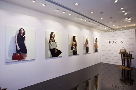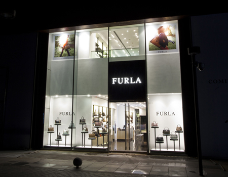 Furla因為春夏季推出色彩鮮艷的塑膠Candy Bag而關注度激增,這款Candy Bag秋冬季會繼續推出新款,不過從色彩飽和度較高的亮麗糖果色改為飽和度較低的裸色、軍綠色和深紅色款式。Furla是意大利家族品牌,而且到現在還在創始家族的掌控中,沒有賣給大奢侈品集團。制造皮具的意大利品牌,工藝自然沒得說。我問PR,和那些聽起來更大牌大家更耳熟能詳的意大利皮具品牌——出于禮貌就沒點名——相比,Furla的特色是什么?答曰壓紋,果然店里有貌似鴕鳥皮和蟒蛇皮的手袋其實都是精致的壓紋牛皮,然而Furla也有珍惜皮質的產品。縱觀了一圈店里的sample,尺寸上從小號clutch到大號手袋齊全,款式上從端莊傳統的拎包到目前正紅火的有點復古風格的斜背大小包都有,材質上從漆皮到壓紋牛皮到馬毛到麂皮到羊毛一應俱全,還有多種多樣材質拼接的款式。設計上基本保持了一致的風格又各有千秋,五金件的使用算得上恰到好處——我比較反感有很多五金件裝飾的款式。如果要評價一下包款風格的話,可用端莊大氣這幾個字。