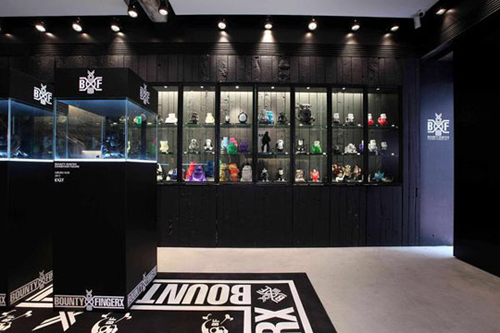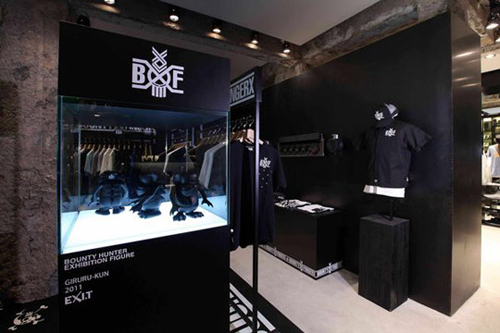 廣大FGXX以及BH的粉絲們告訴你們一個好消息,期待已久的Fingercroxx x BOUNTY HUNTER Pop-Up Store終于在Hong Kong EXI.T落戶了,集結了Fingercroxx X BOUNTY HUNTER的全系列單品,包括一系列Tee、Mesh Cap、Shirt、Scarf以及Sungalsses等街頭暴走風格濃厚的產品,當然BH的dual-label Kun figure仍然搶據了無限風光,店鋪整體風格以沉穩黑色呈現,圍繞兩品牌的合作標識作為裝飾點綴,光是欣賞下就已經讓人耐不住心動想要立刻踏入店中挑選一番,如果恰好你在HK的話,一定要擠出時間蒞臨Fingercroxx x BOUNTY HUNTER Pop-Up Store。