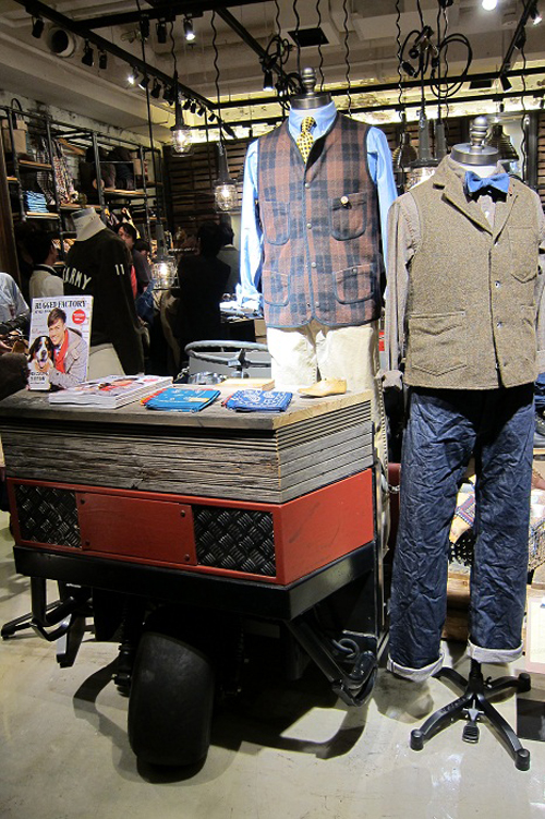 近年來(lái),阿美咔嘰風(fēng)勁吹,世界各地紛紛開(kāi)設(shè)阿美咔嘰風(fēng)格服飾的專(zhuān)門(mén)店鋪,日前日本知名服飾雜志Free&Easy雜志聯(lián)手日本大型時(shí)裝分銷(xiāo)商WORLD開(kāi)設(shè)了一家名為RUGGED FACTORY的服飾概念店,店內(nèi)的陳設(shè)采用美國(guó)老式風(fēng)格,店內(nèi)銷(xiāo)售的服飾均為復(fù)刻品和阿美咔嘰風(fēng)格的服裝,店內(nèi)陳設(shè)依照軍事、牛仔、校園生活、粗花呢皮革、戶(hù)外風(fēng)格分開(kāi),喜歡美式復(fù)古風(fēng)格的消費(fèi)者可以在此找到所有喜歡的東西。可惜目前僅有東京一家店鋪,不過(guò)雙方皆有向外擴(kuò)展的計(jì)劃。