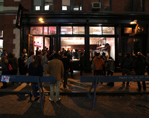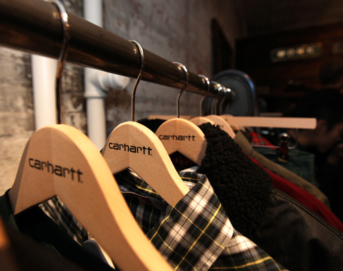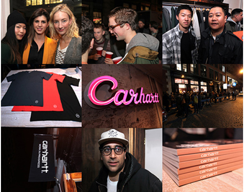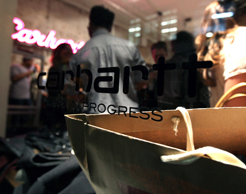Carhartt WIP在紐約開設專屬店鋪并舉行了盛大的慶祝酒會,現場的布置頗具紐約特色,古舊的木質貨架和斑駁的墻壁突出了Carhartt品牌一貫強硬特色,酒會由Carhartt品牌創意總監Arnaud Faeh設計,力邀日本知名DJ Alex和藝術家Kostas Seremetis到場助興,然而這些人都不是酒會的主角,此前我們曾為大家報道過的Carhartt x fragment design紐約店鋪開張新品才是當晚最大的亮點。