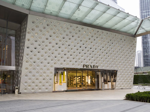 日前,坐落在廣州太古匯的Prada新店開幕。由Roberto Baciocchi設計的新店共兩層,占地約840平方米。一層主營女裝、包包、女鞋和配飾,二層則為男裝區。Prada品牌的特有元素在店內隨處可見:淡綠色織物裝飾的墻面,黑白方格的地板以及珍貴布料織成的地毯。