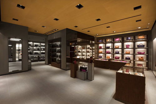 由創(chuàng)意總監(jiān)Tomas Maier設(shè)計的新店由天花板到地板,不論是手制玻璃櫥窗或是門柄上的皮套,每個部分均以匠心呈現(xiàn)。特別值得注意的有:參考空氣力學設(shè)計,以棕櫚木和鋼制成的垂直天窗、精心雕琢的陳列柜、滿墻的小山羊皮、安哥拉山羊毛制成的家具以及經(jīng)過特別染色處理的新西蘭純羊毛地毯。靜謐而激發(fā)美感的黃褐色色調(diào)更為顧客憑添幽雅輕松的購物體驗。此間新店的內(nèi)部設(shè)計優(yōu)雅的體現(xiàn)出Bottega Veneta的品牌內(nèi)涵:雋永的設(shè)計,摩登的功能主義,出眾的工藝以及對于材質(zhì)的不懈堅持。