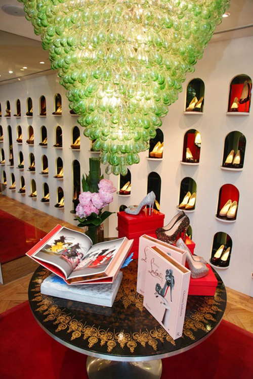 上海商城精品專賣店于2011年12月17日正式開業,而新店亦貫徹各地專賣店的獨特風格,增添更多元素,例如靈感來自上海民居的瓦片屋頂,仿若魚鱗和龍鱗的方塊外牆,又獲取材自中國十二生肖,并設有背燈的銅磚墻壁等等。Christian Louboutin對新店的設計非常重視,更親自挑選華麗非常的敘利亞玻璃吊燈。