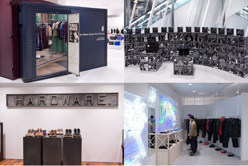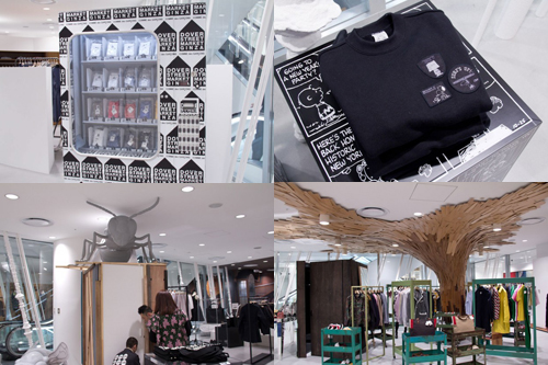 本次就讓我們深入重溫一下DOVER STREET MARKET華麗的面貌,在六層高的店鋪里匯聚了眾多知名服飾品牌,并且為每一個品牌都獨立創新的陳列設計,圖片中可以看到形狀各異的木頭架、璀璨的霓虹燈管、巨型昆蟲形象、大小不一的集裝箱、以及可供前來消費的顧客體驗店鋪信息的蘋果電腦,可謂是煞費苦心,DOVER STREET MARKET也勢必成為日本新的潮流地標。