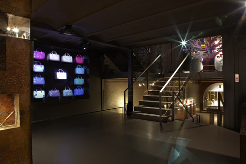 這座占地580平方米,共五層的建筑,由西班牙著名設計工作室Boolab 與Loewe 共同創作而成。它是一個畫廊式的展示空間,在這里展示了Loewe最經典的產品和標志性的皮料,以及它們如何誕生的傳奇故事。