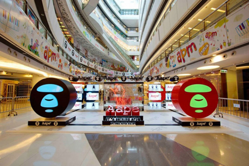 屆時現(xiàn)場還將舉行Aape apm Facebook Check-in活動,將會免費送出限量的tote bag,限量300個。此次率先開幕的觀塘apm POP-UP將一直開設到5月14日,直到Aape BY A BATHING APE旺角朗豪坊旗艦店開幕才會結束,現(xiàn)在讓我們提前一天來看一下即將開幕的Aape POP-UP的現(xiàn)場吧。