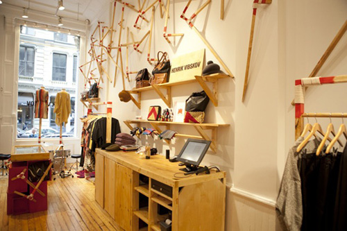 【中國(guó)鞋網(wǎng)-街頭搜店】紐約對(duì)于Henrik Vibskov來(lái)說(shuō)算是個(gè)為自己帶來(lái)靈感的福地了,位于紐約SOHO區(qū)的Henrik Vibskov全美旗艦店在這周末盛大開(kāi)幕了,這是繼奧斯陸和哥本哈根的店鋪外的第三家品牌專(zhuān)營(yíng)店,店內(nèi)的裝潢采用了大量原木材質(zhì),體現(xiàn)了最輕松自然的購(gòu)物環(huán)境,由Henrik Vibskov本人及其團(tuán)隊(duì)親自設(shè)計(jì)。