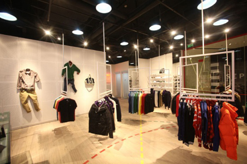 在原有的高端定位上融入更活力創新的元素,LACOSTE L!VE專賣店引入了全新的店鋪概念,在創作與非傳統的時尚中尋求大膽平衡。替代了傳統陳列柜,設計團隊運用了現代感強烈的網狀展示墻來懸掛商品,使得產品的陳列區富有質感。