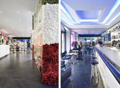 Marc Jacobs Bar 與店鋪用一道藍色玻璃墻相隔,坐于其中,可將店鋪風情盡收眼底,趣味十足。
