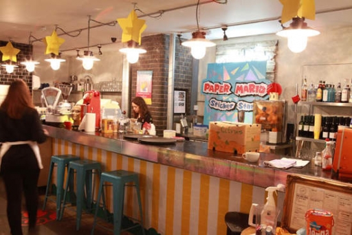 【中國鞋網(wǎng)-街頭搜店】說到最經(jīng)典的游戲,超級(jí)瑪麗排第二相信沒人敢說第一,上至80下至8歲相信沒有聽說過超級(jí)瑪麗的應(yīng)該可以用屈指可數(shù)來形容了。此次英國任天堂為了慶祝“紙片馬里奧”的發(fā)行,將倫敦的一家連鎖餐廳The Breakfast Club位于Spitalfields的分店改造成為紙片馬里奧的主題。只要一進(jìn)入店內(nèi),仿佛便處在游戲當(dāng)中,毫不夸張的說,超級(jí)瑪麗主題隨處可見。可是不禁弱弱的想問一下,這家館子的菜單只有蘑菇嗎?感興趣的朋友不妨親身前去一看究竟。