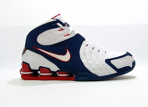 另一款ZOOM LEBRON 3是由克里夫蘭騎士隊的LeBron James所代言,這位人氣水漲船高的球員,NIKE在為他量身訂作的鞋款上將各種頂級配備都放置其中,外型上延續強悍粗曠的線條美感,人造麂皮做的鞋帶環,上面還有金屬的獅子頭,看起來霸氣十足。SHOX VC5 AF的代言球星是籃網隊的Vince Carter,在VC5上可以看到Flight標記,Flight代表著VC5是雙適合飛人型的鞋款,對于想要仿效Carter飛天灌籃絕技的人來說,它可是上籃時的絕妙好幫手,偏高統的設計搭配簡潔的色塊是強而有力的設計,NIKE強調此款鞋在落地時的力道能迅速的吸收,強調踝部包覆及前掌固定的功能,在鞋帶中段的松緊帶也加強了前掌固定,這次針對亞洲人腳型所改善的AF版型,也是首次明星簽名鞋款包含兩種版型上市販賣,顯見NIKE越來越重視亞洲市場的營銷策略。
